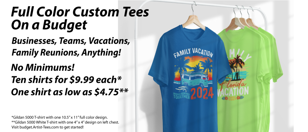 Screen Printing, Full Color digital Transfers.